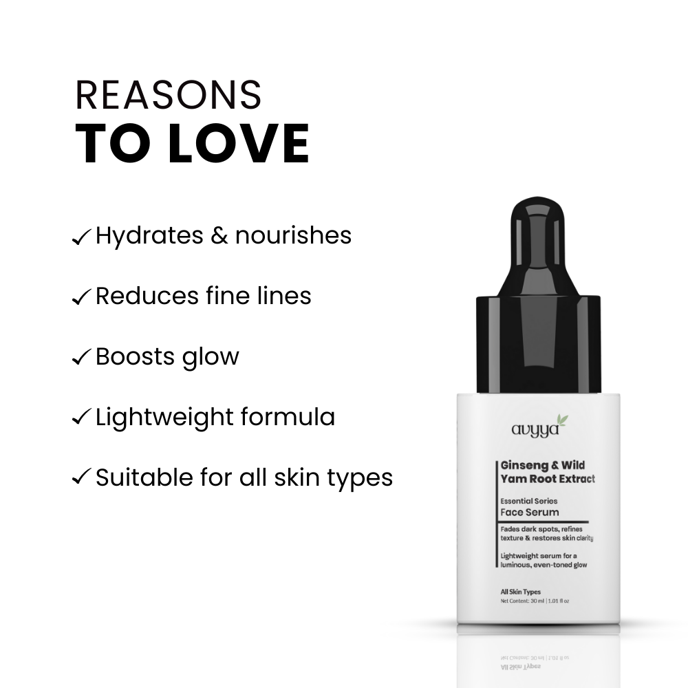 Ans:- Yes, Avyya's Essential Face Serum contains Ginseng making it effective in reducing fine lines, improving skin elasticity, and promoting a youthful, radiant complexion.