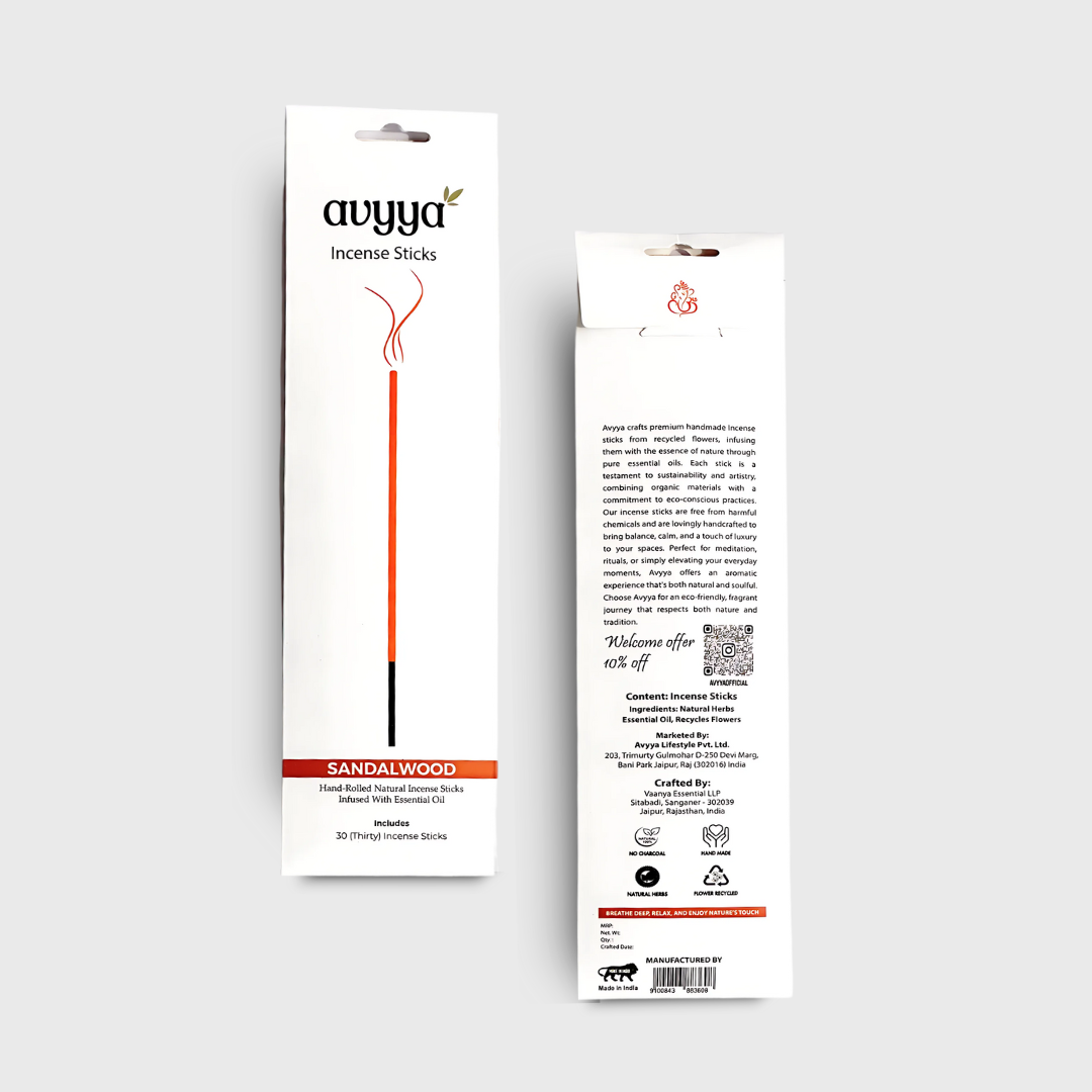 Avyya Hand Rolled Incense Sticks – (30, Sandalwood)