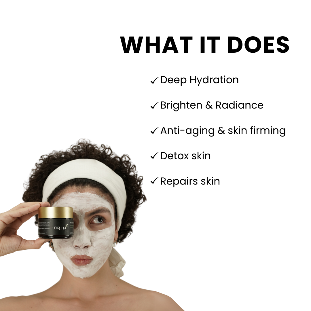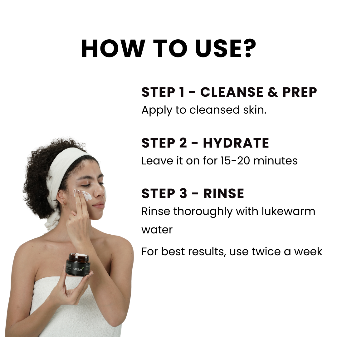 Ans:- To deeply hydrate and rejuvenate your skin leave the mask for 10-15 minutes. Gently rinse off the mask with lukewarm water for a smooth and radiant complexion.