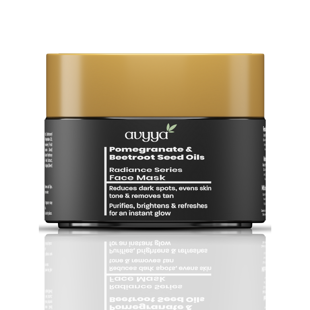 Glow bright with Avyya’s Radiant Face Mask, naturally formulated with beetroot oil and pomegranate goodness. Hydrates your skin and leaves it dewy & fresh all day long. Rejuvenates your skin and makes it glow indefinitely by incorporating our mask in your daily regimen. Consistently use Avyya’s glow face mask for flawless, bright, and rejuvenated skin.