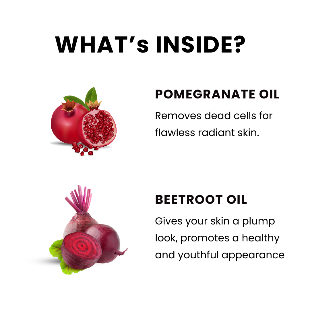 - Beetroot Oil- Gives your skin a plump look and promotes a healthy and youthful appearance.