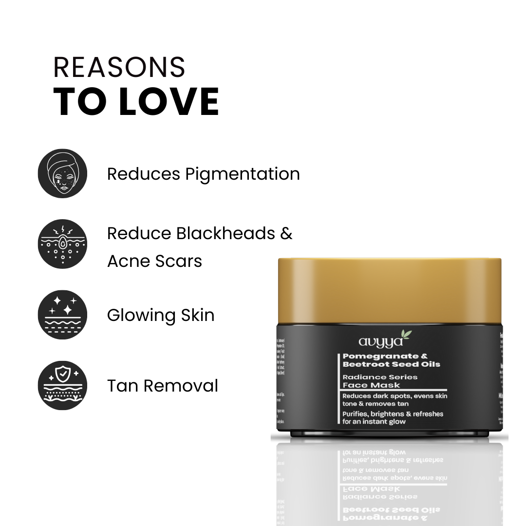 Avyya Instant Glow Face Mask – (3.52 oz) | With Pomegranate & Beetroot Seed Oils for Dark Spot & Tan Removal | Reduces Pigmentation, Blackheads & Acne Scars | Instant Brightening, Glowing Skin | Suitable for All Skin Types, Men & Women.