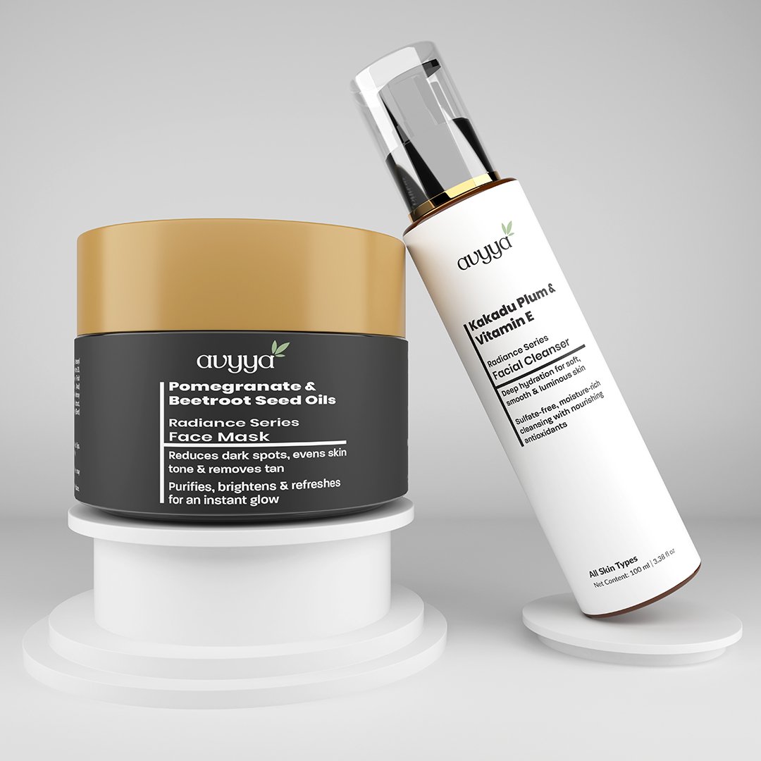 Our Avyya's Radiance Detox Kit contains plant-derived active ingredients in facial cleanser that removes dirt and makeup effectively. Meanwhile, Face Mask is naturally formulated with the goodness of beetroot and pomegranate oils goodness for bright and rejuvenated skin.